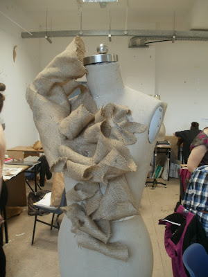 Here are a select few of my croquis to demonstrate what we did....we cut are shapes firstly out of paper and put them on a manican and took photos,
